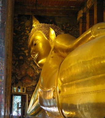 bladguld. Når man skal ind i Tempelet med den Hvilende Buddha