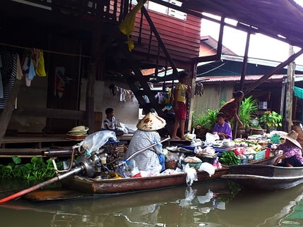 hvor vi var med en longboat hele dagen langs Bangkoks floder.