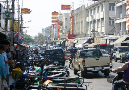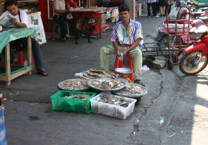 Meget af handlen thaierne imellem foregår på gaden, som det
